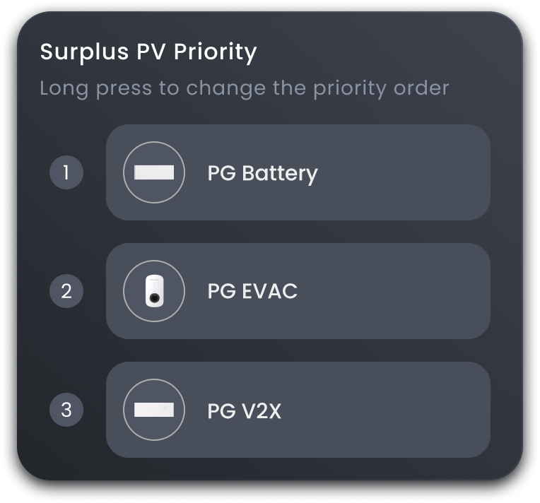 Vehicle-to-home (V2H): Utilize EVs for Enhanced Home Backup Power, Coupled with PG BatteryPack for even more than 100kWh Storage Capacity.